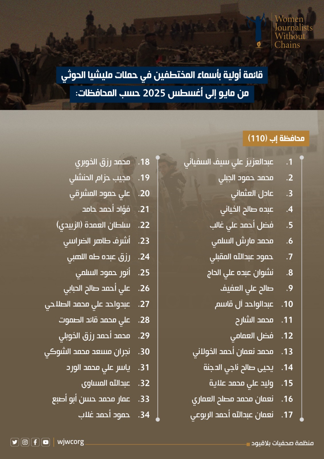 قائمة أولية بأسماء المختطفين خلال الفترة مايو - اغسطس 2025