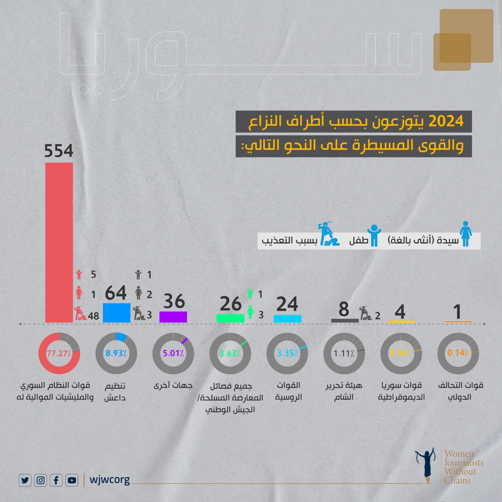 التقرير يُبرز كيف تحوّلت الثورة السورية، التي بدأت عام 2011 كجزء من الربيع العربي، إلى ساحة تصفية للصحفيين، حيث استُهدفوا من قبل النظام السوري وأطراف الصراع الأخرى، وتعرضوا للقتل، والاعتقال، والتعذيب، ما أجبر العديد منهم على ممارسة الرقابة الذاتية.